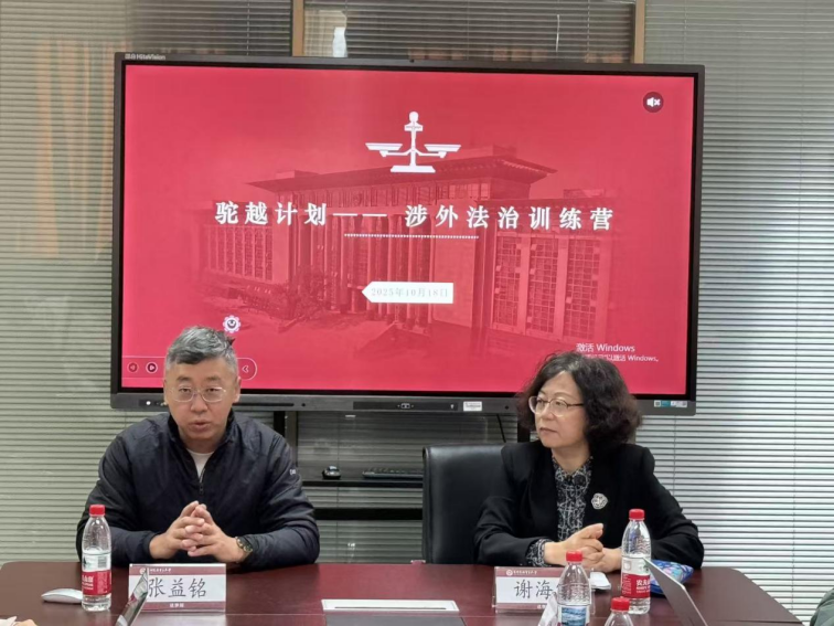 当前,我国正坚定不移推进高水平对外开放,涉外法治人才供需矛盾日益凸显,就业市场对兼具国际视野、实务能力与合规思维的高端涉外法治人才需求激增。在此背景下,首都经济贸易大学法学院紧扣国家战略与市场需求,与党委学生工作部于2025年10月18日在博远楼406联合举办“涉外法治训练营”。训练营由法学院教师谢海霞教授、魏庆坡副教授、张建副教授、郝荻老师主讲,党委书记张益铭主持,来自全校各学院25名学生全程参与了此次培训。