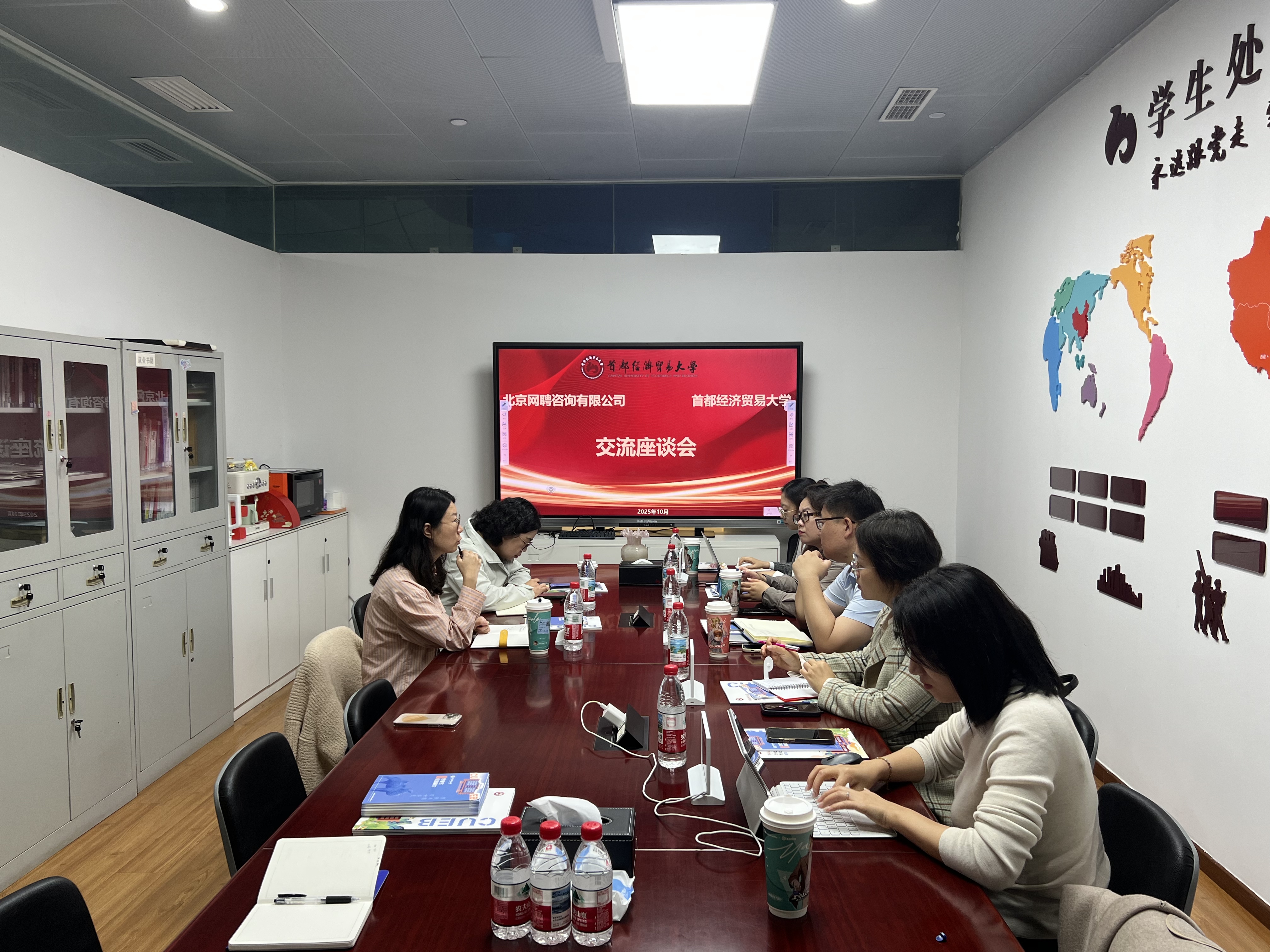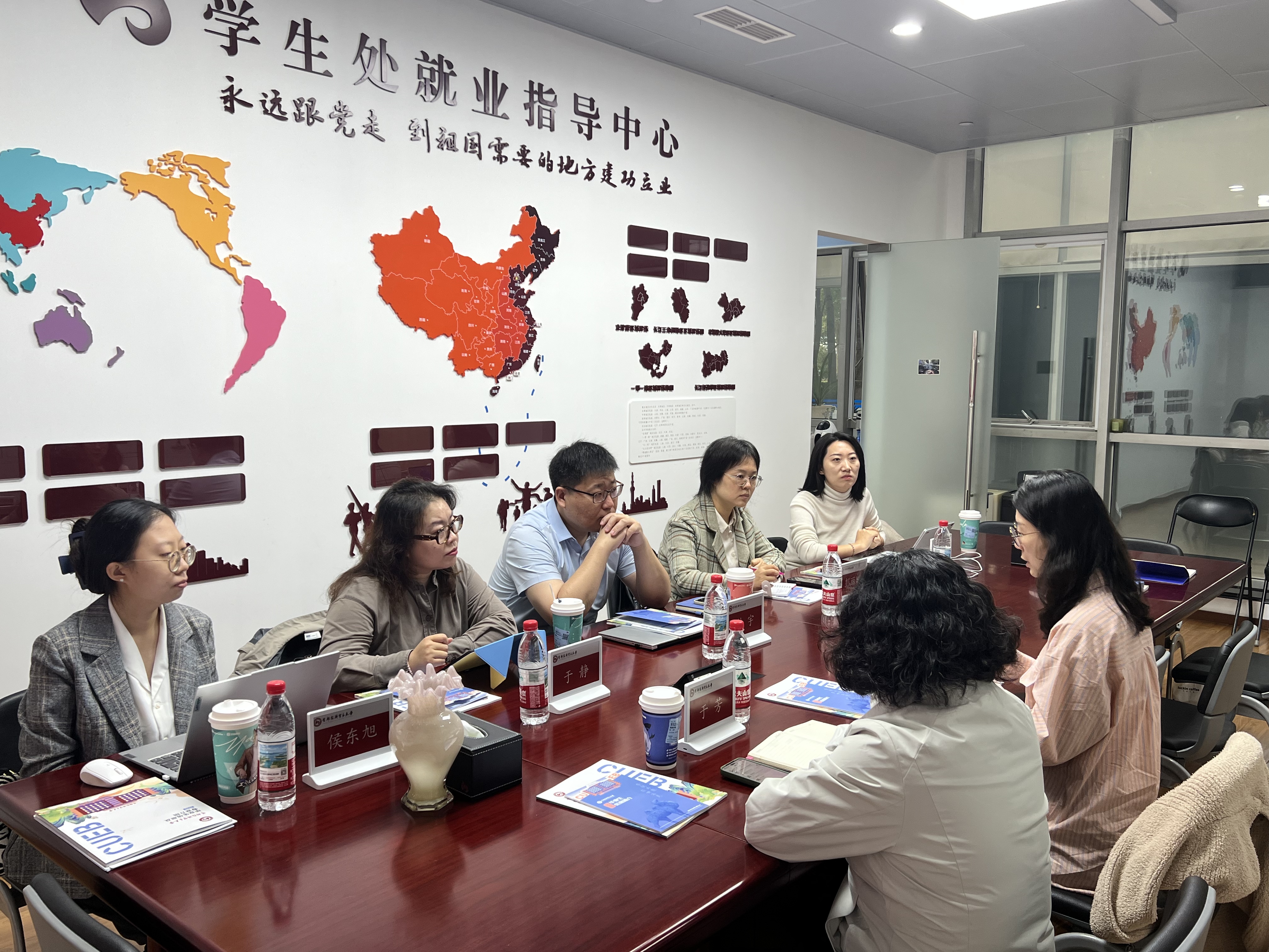 学生处副处长、就业指导中心主任孙乐、就业指导中心生涯指导主管于芳与智联团队共同探讨了当前的就业形势和行业发展趋势,特别是数字时代下赋能学生多样化发展的实现路径以及未来提升就业质量的有效途径。