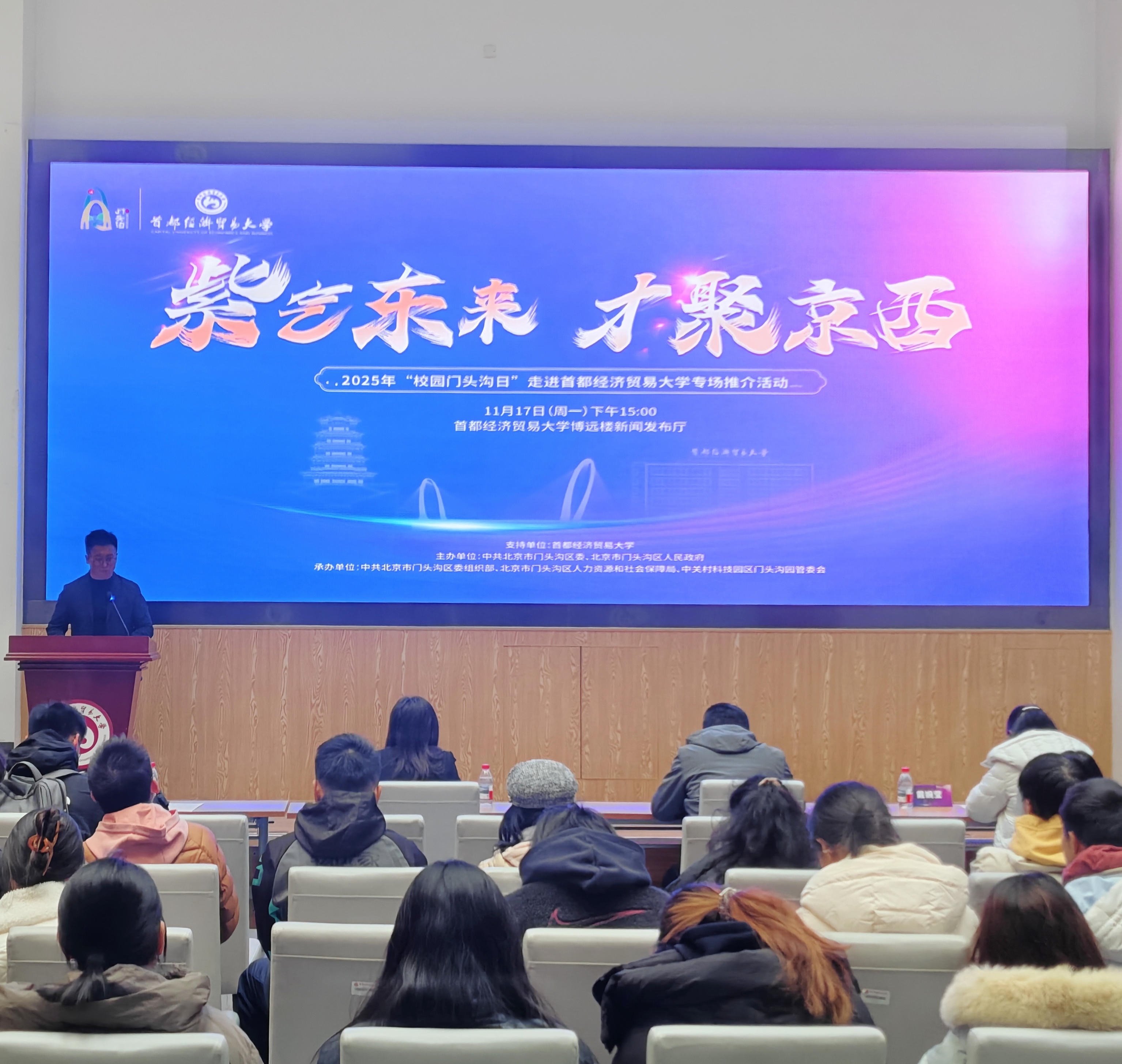 11月17日,“紫气东来才聚京西”2025年“校园门头沟日”专场推介活动在首经贸博远楼新闻发布厅举行。