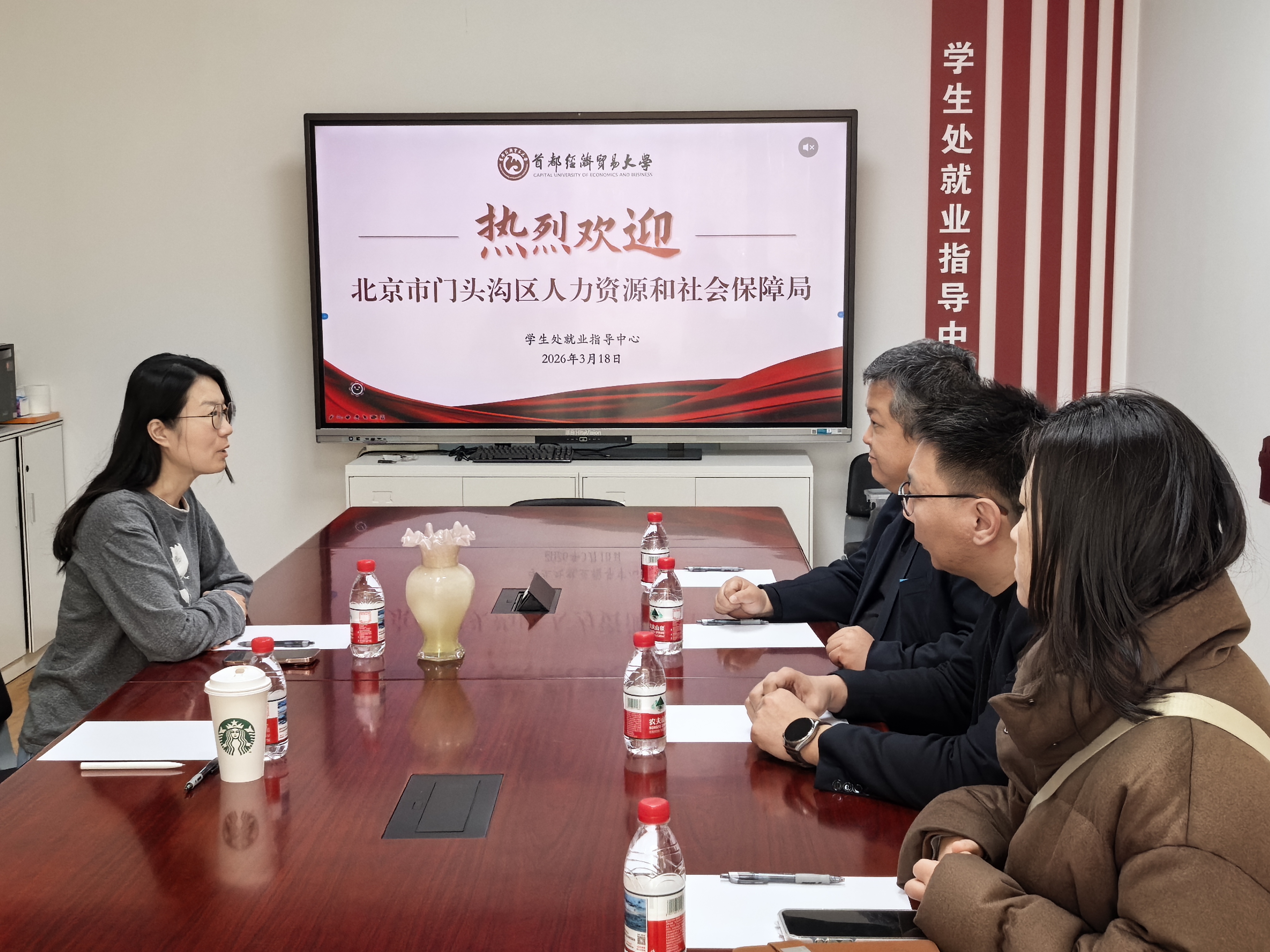 3月18日,首都经济贸易大学学生处与门头沟人力资源和社会保障局一行开展交流座谈。