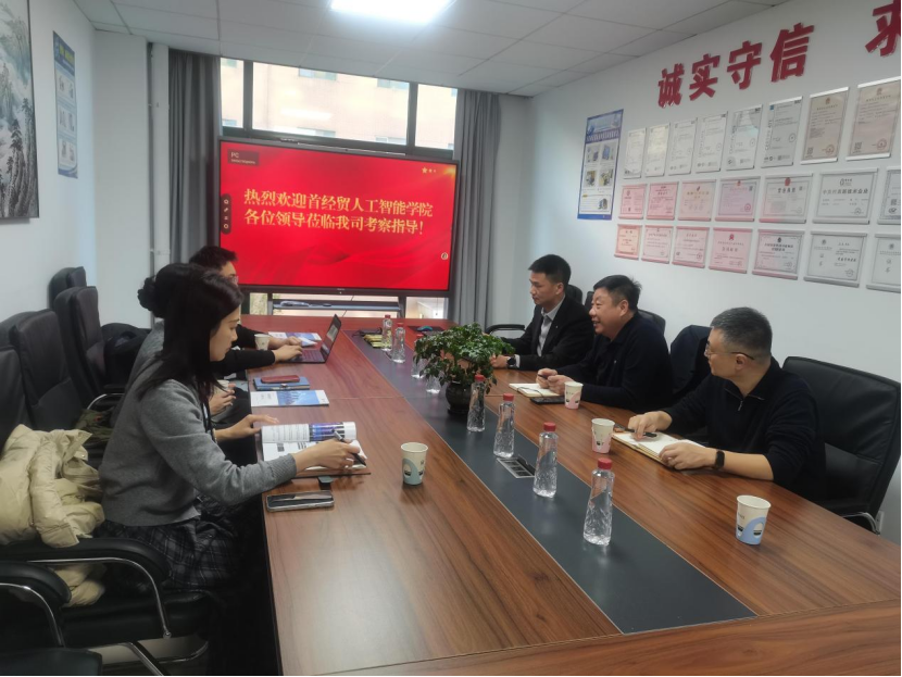 12 月 1 日,人工智能学院党委书记李晓鸥、副书记金湜、院长助理周振坤到访北京东青互联科技有限公司,与企业董事长牛东及核心团队围绕大模型应用研发、教师成果转化、学生实习就业三大核心议题展开专题座谈。双方聚焦优势互补、精准对接需求,高效敲定合作方向,为校企深度联动奠定坚实基础。